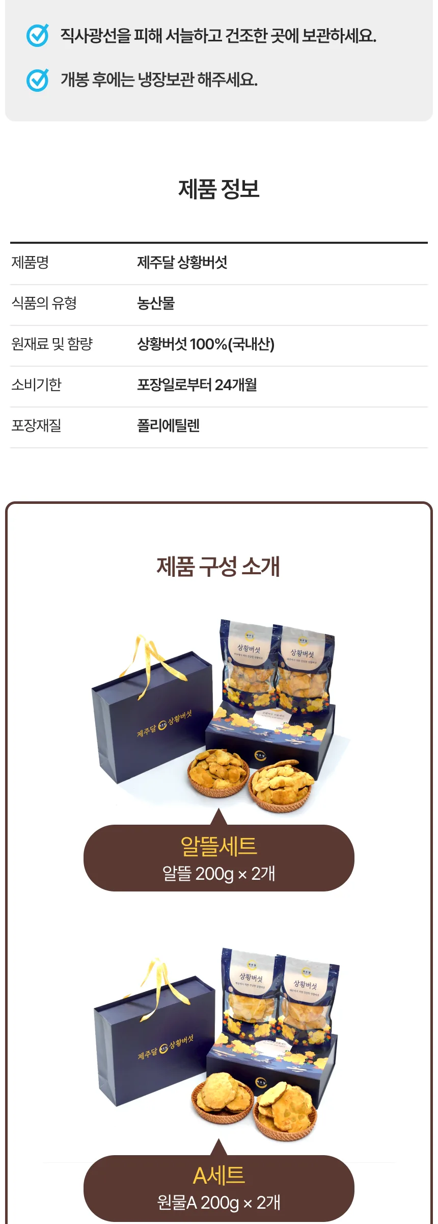 제주산 유기농 상황버섯 선물세트 제주상황버섯 E세트 400g (원물B 절편 200g 2개입)